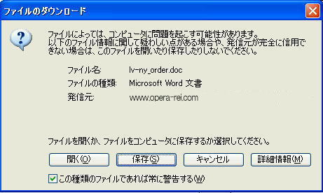 保存後、保存場所に表示された「lv-ny_order.doc」というアイコンをクリックし、印刷して下さい。