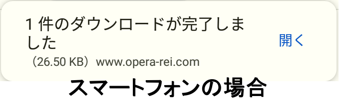 2.スマートフォン・PC いずれも、タップまたはクリックすると、自動的にワードファイルがダウンロードされ、下の画像のようなメッセージが表示がされます。
